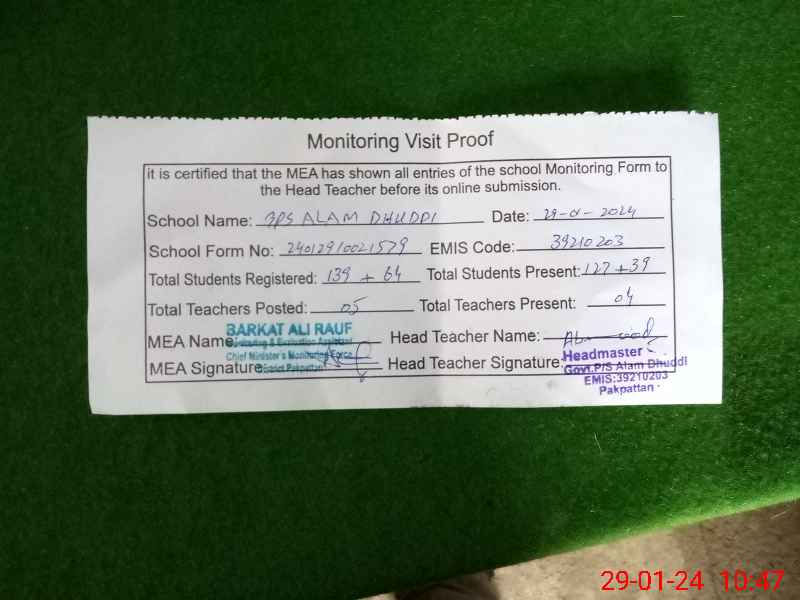 | EMIS Code: 39210203 | Name of School: GPS ALAM DHUDDI | |||