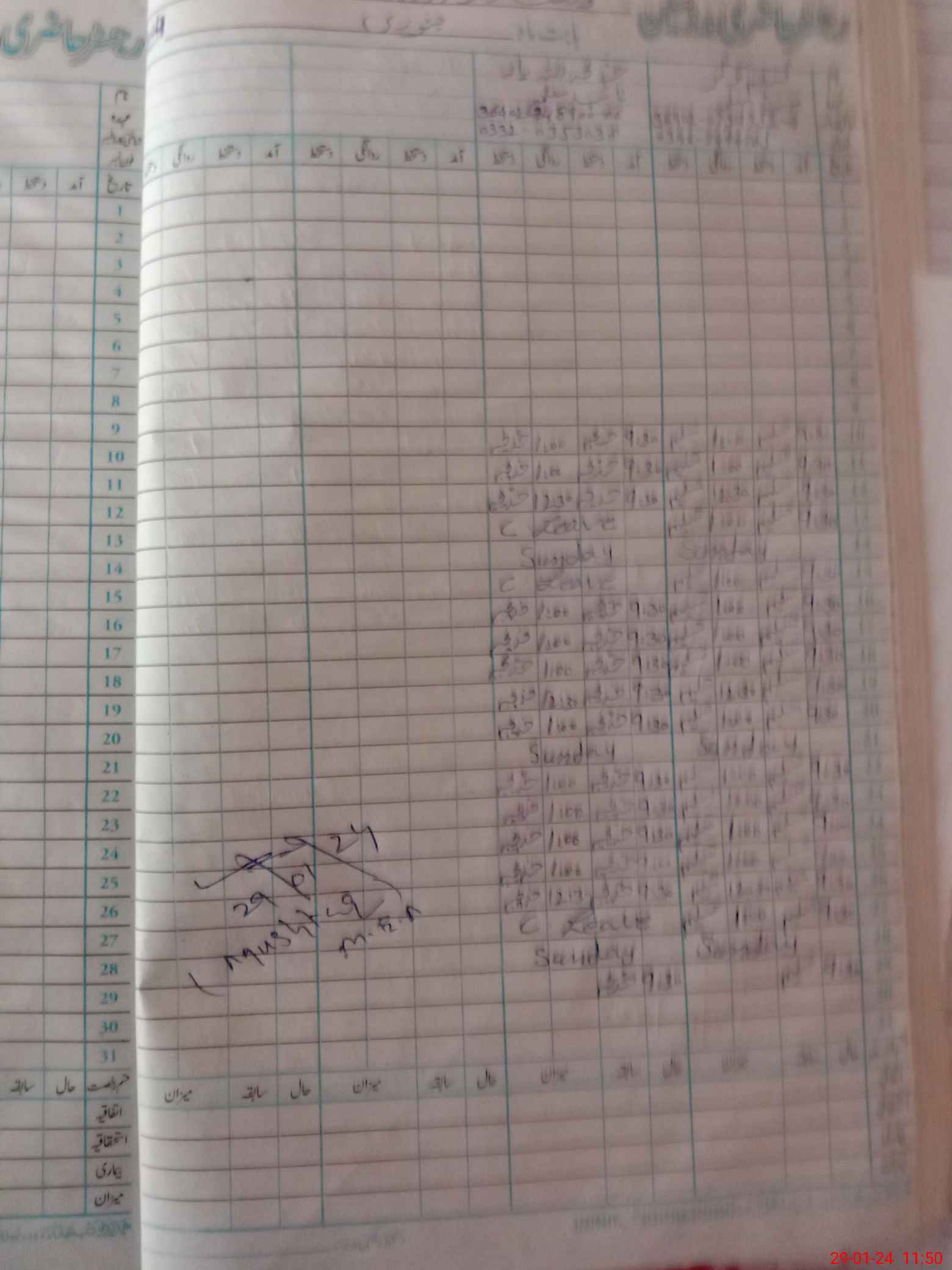 | CNIC | Full Name | Designation | R/C | Absence During Last Calender Month |