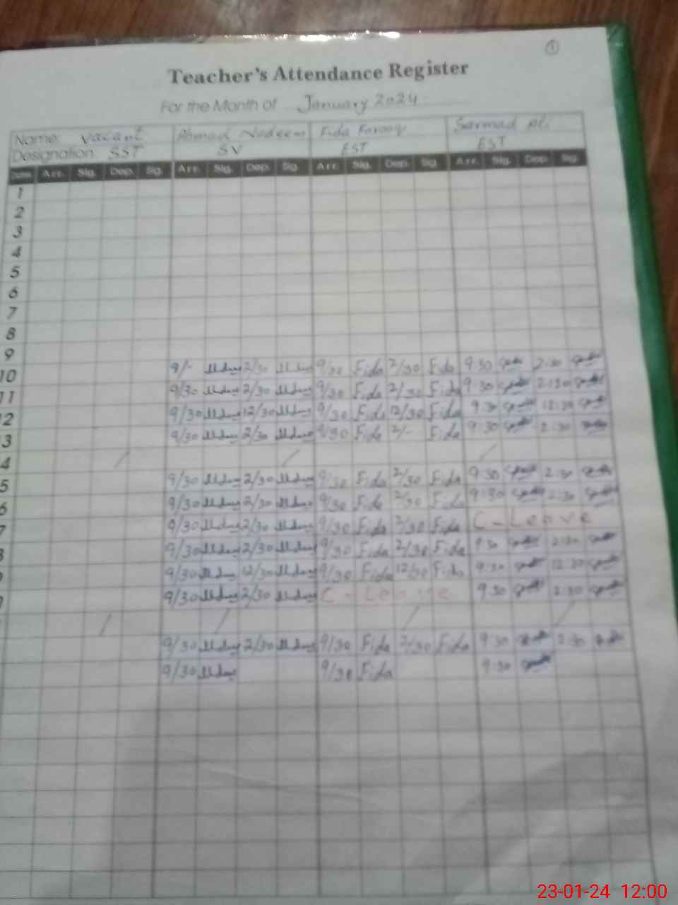 | CNIC | Full Name | Designation | R/C | Absence During Last Calender Month |