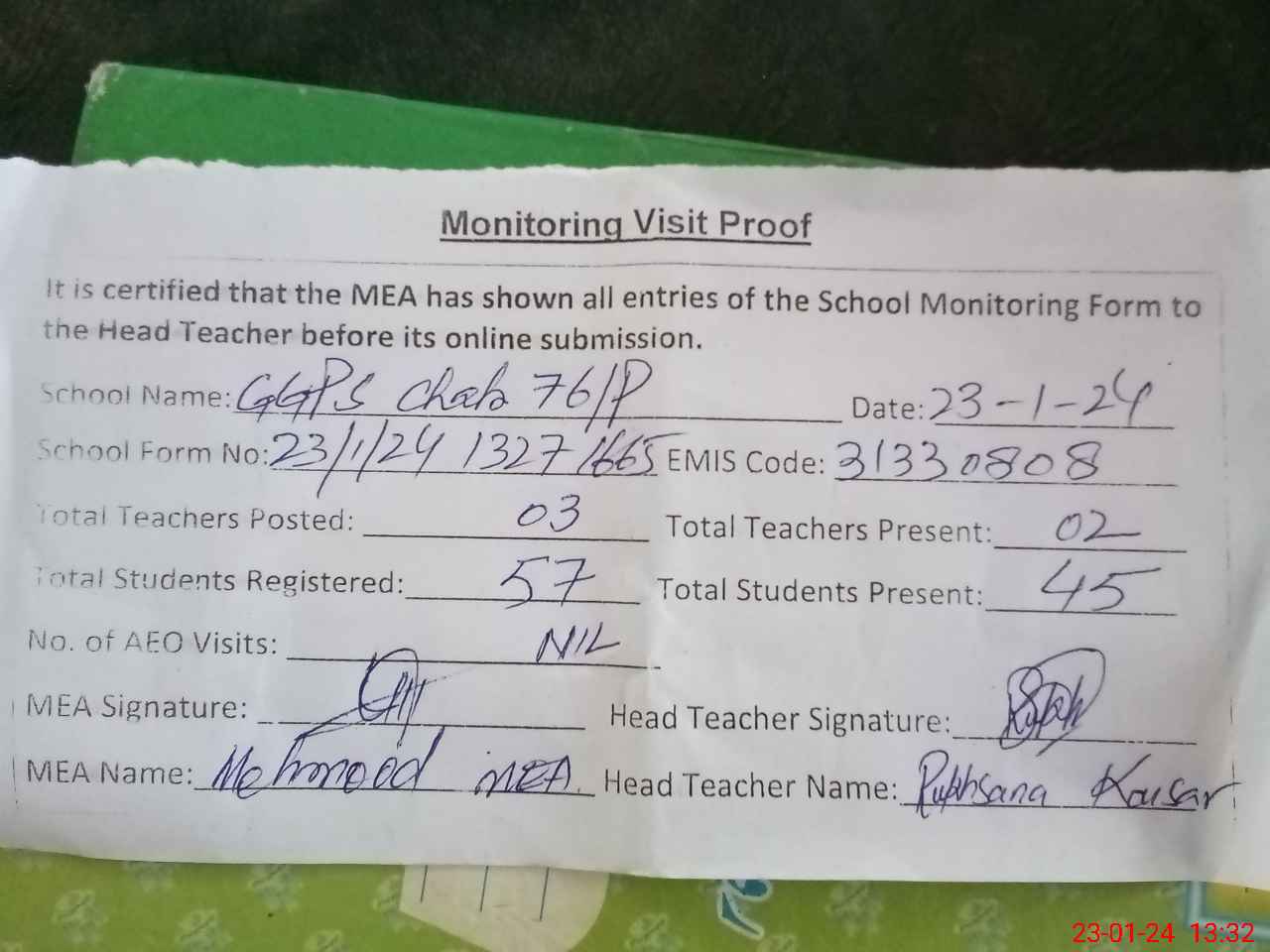 | EMIS Code: 31330808 | Name of School: GGPS CHAK 76/P | |||