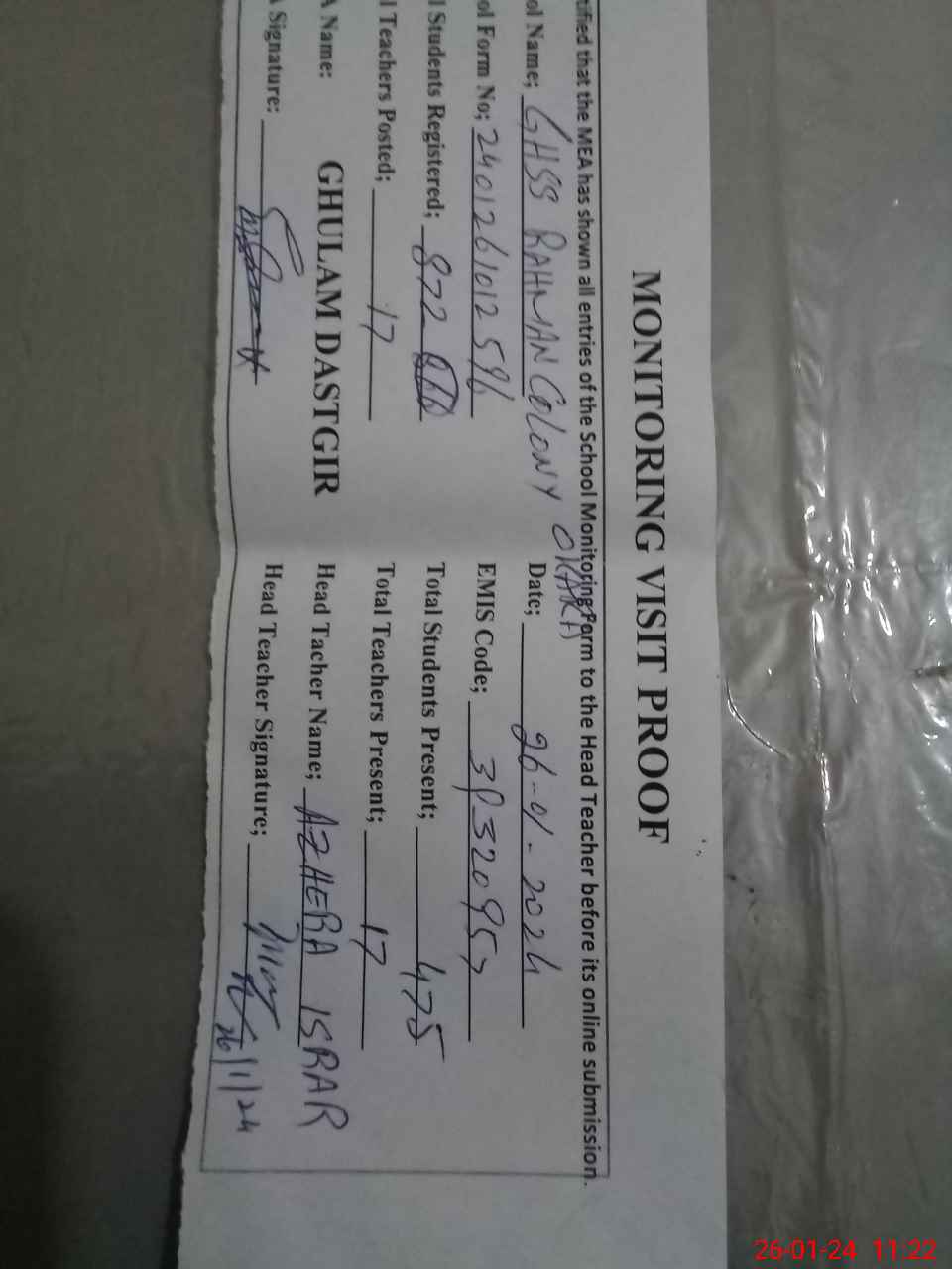 | EMIS Code: 39320957 | Name of School: GGHSS REHMAN COLONY OKARA | |||