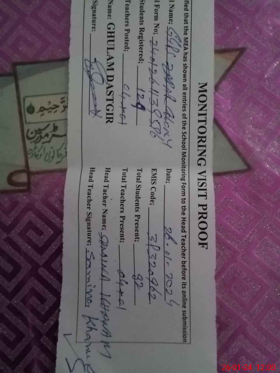 | EMIS Code: 39320962 | Name of School: GGPS MC ZAFAR COLONY | |||