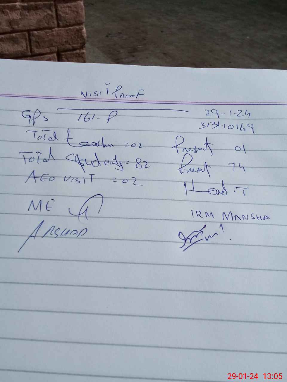| EMIS Code: 31340169 | Name of School: GPS CHAK NO. 161/P | |||