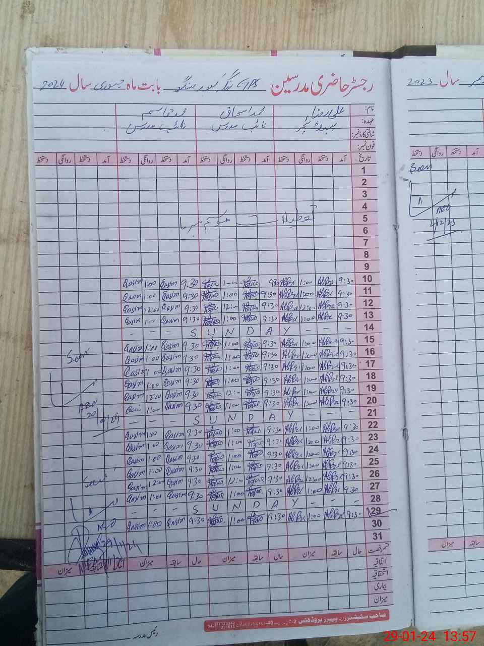 | CNIC | Full Name | Designation | R/C | Absence During Last Calender Month |