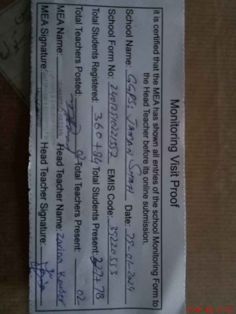 | EMIS Code: 39220553 | Name of School: GGPS JAMAN SHAH | |||