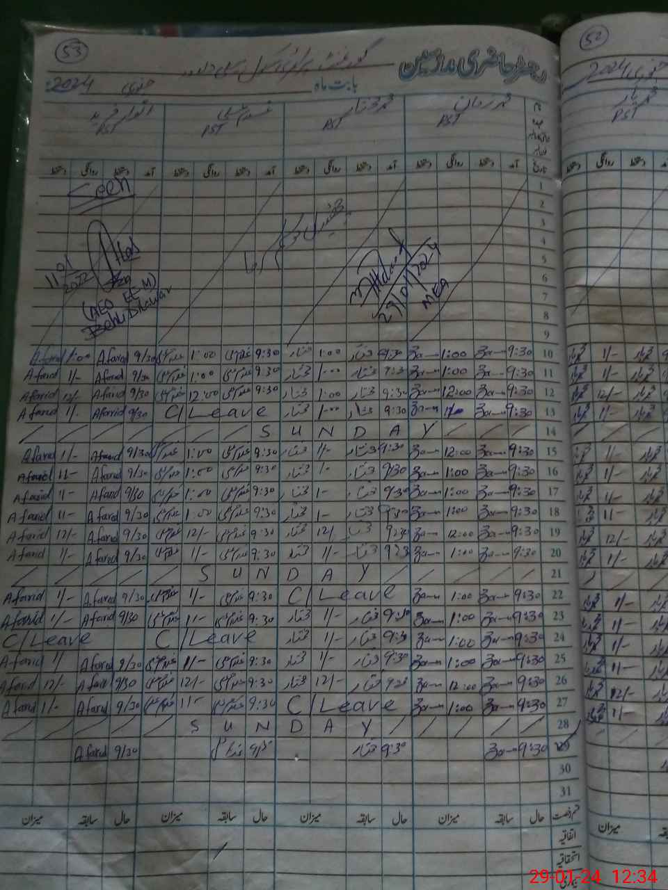 | CNIC | Full Name | Designation | R/C | Absence During Last Calender Month |