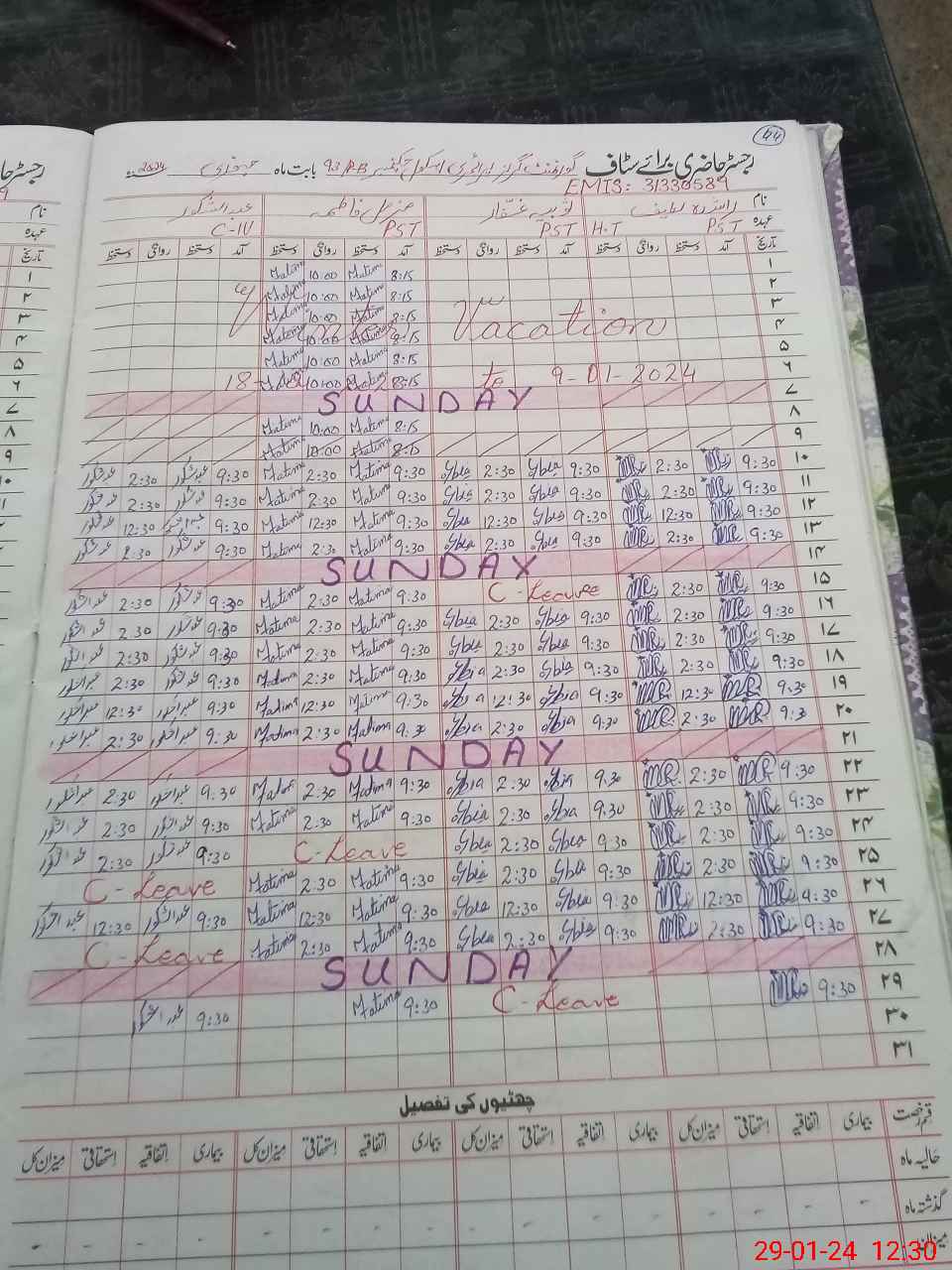 | CNIC | Full Name | Designation | R/C | Absence During Last Calender Month |