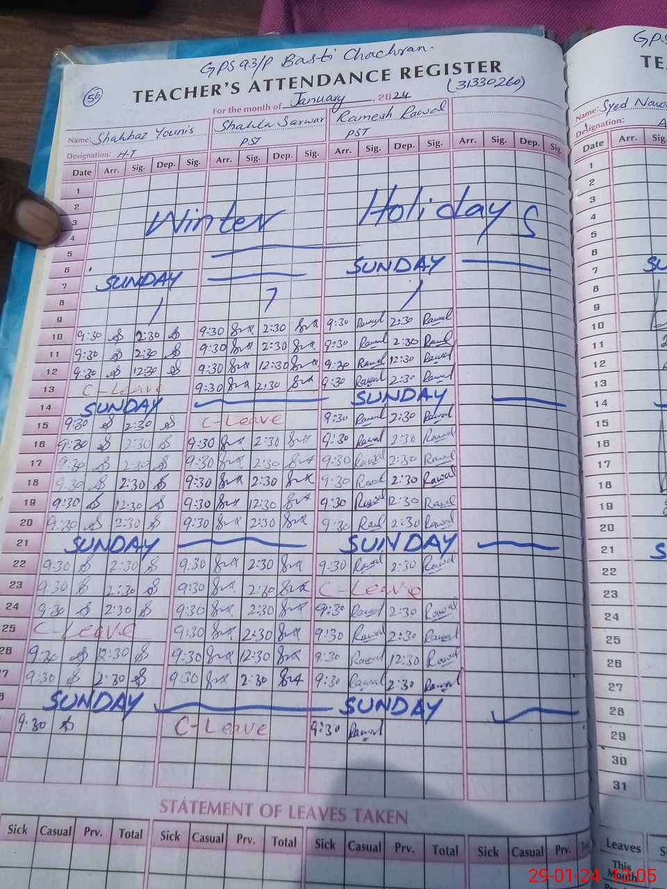 | Leave | Duty | Absent | Maternity | Medical | Ex- Pak |