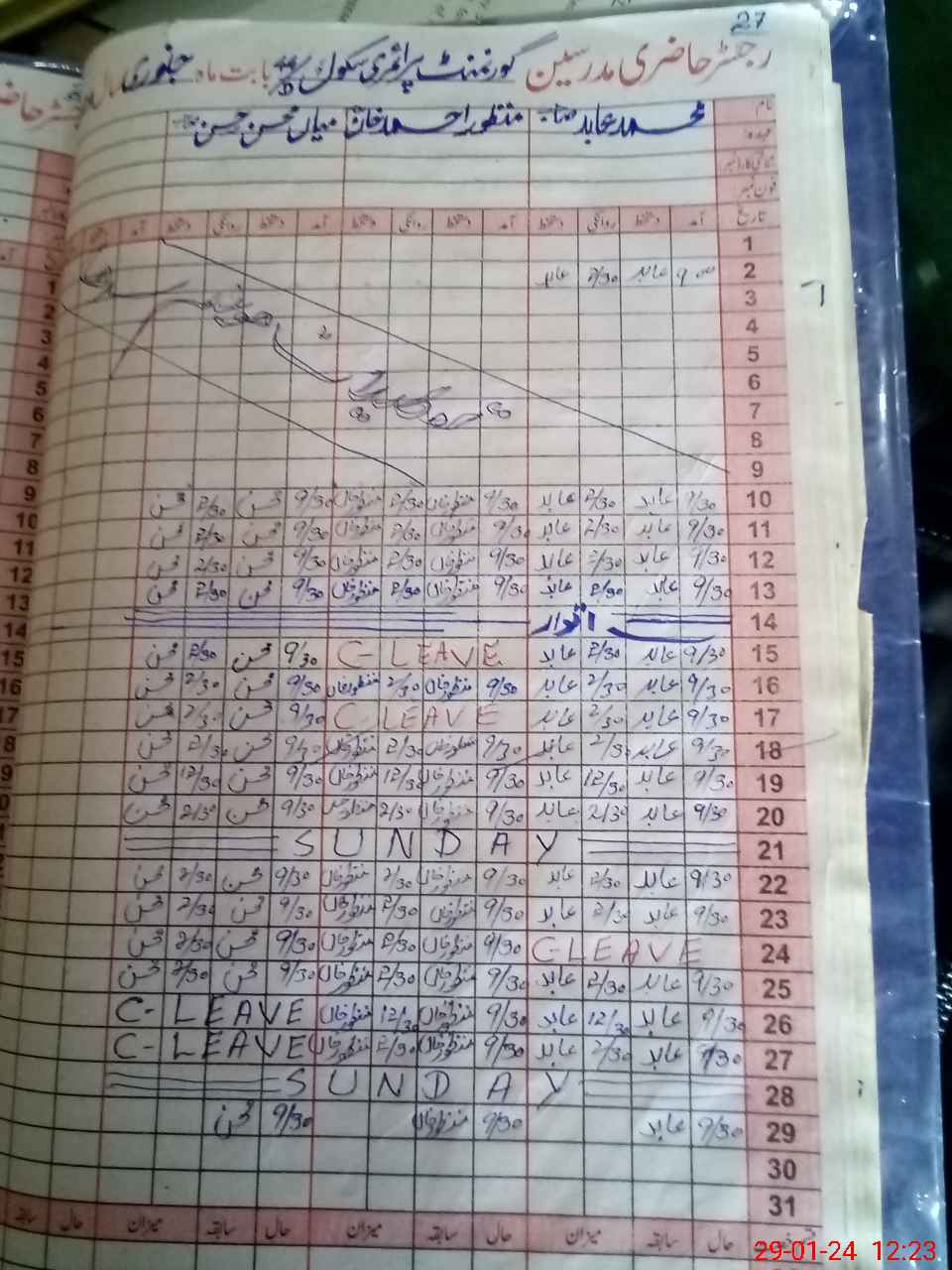 | CNIC | Full Name | Designation | R/C | Absence During Last Calender Month |