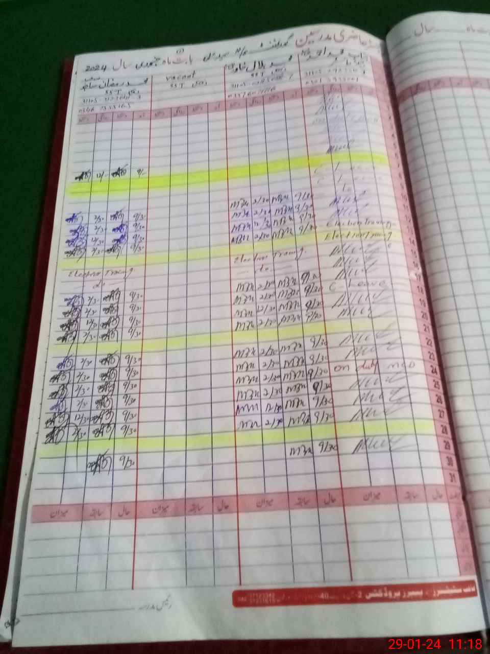 | CNIC | Full Name | Designation | R/C | Absence During Last Calender Month |