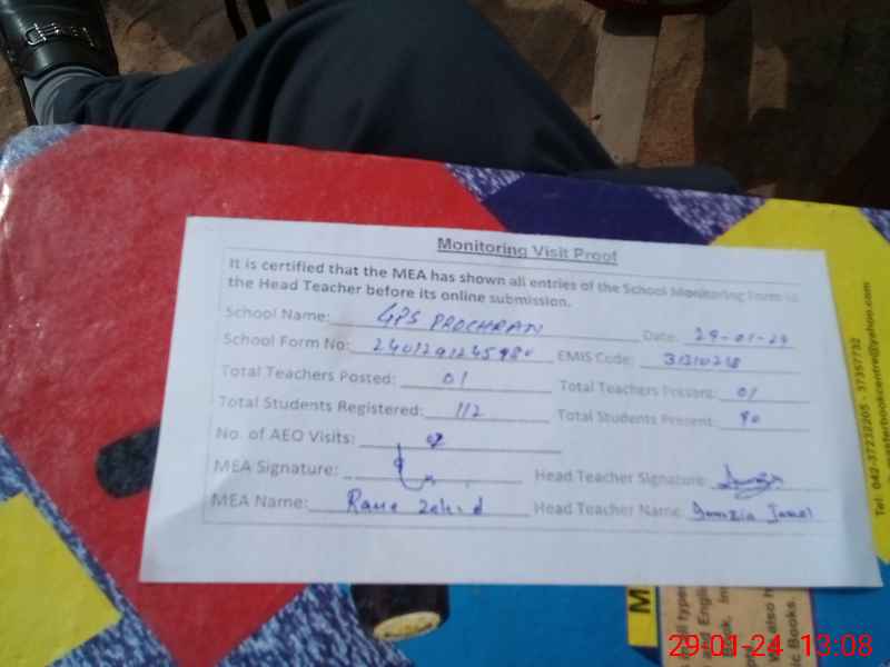 | EMIS Code: 31310218 | Name of School: GPS PROCHRAN (After Noon) | |||