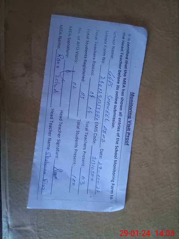 | Attendance Register | Head Teacher | MEA with School | Visit Proof |
