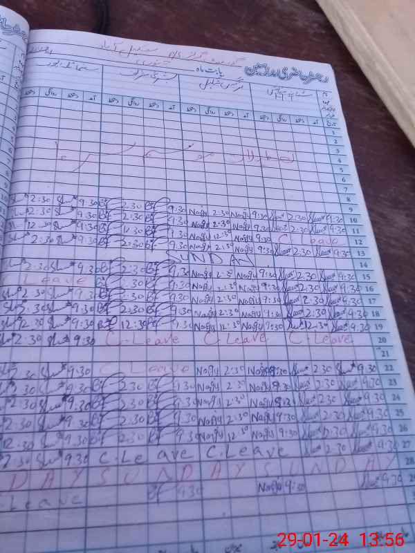 | CNIC | Full Name | Designation | R/C | Absence During Last Calender Month |