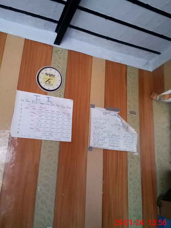 | Total no. of Classrooms: 3 No. of Classrooms Used for Teaching: 2 No. of Classrooms Storing Old Furniture, FTBs, etc: 0Comments if Any: Satisfactory |