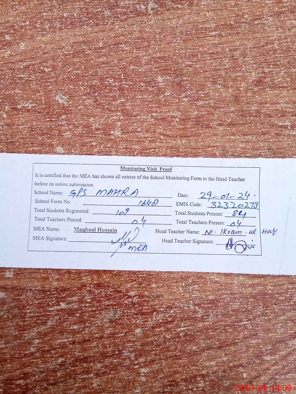 | EMIS Code: 32320273 | Name of School: GPS MAHRA | |||