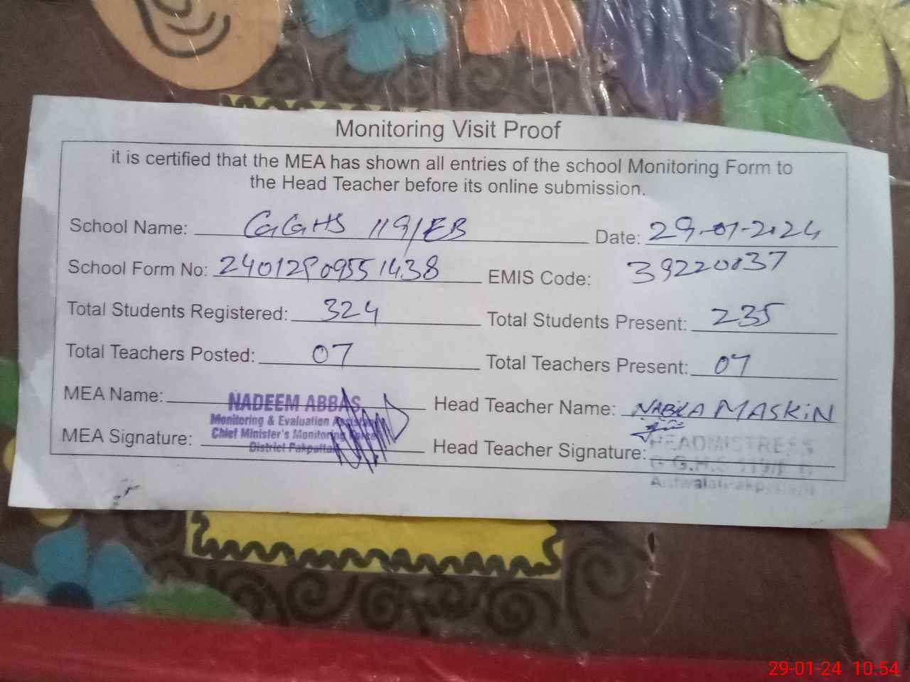 | EMIS Code: 39220037 | Name of School: GGHS 119 EB | |||