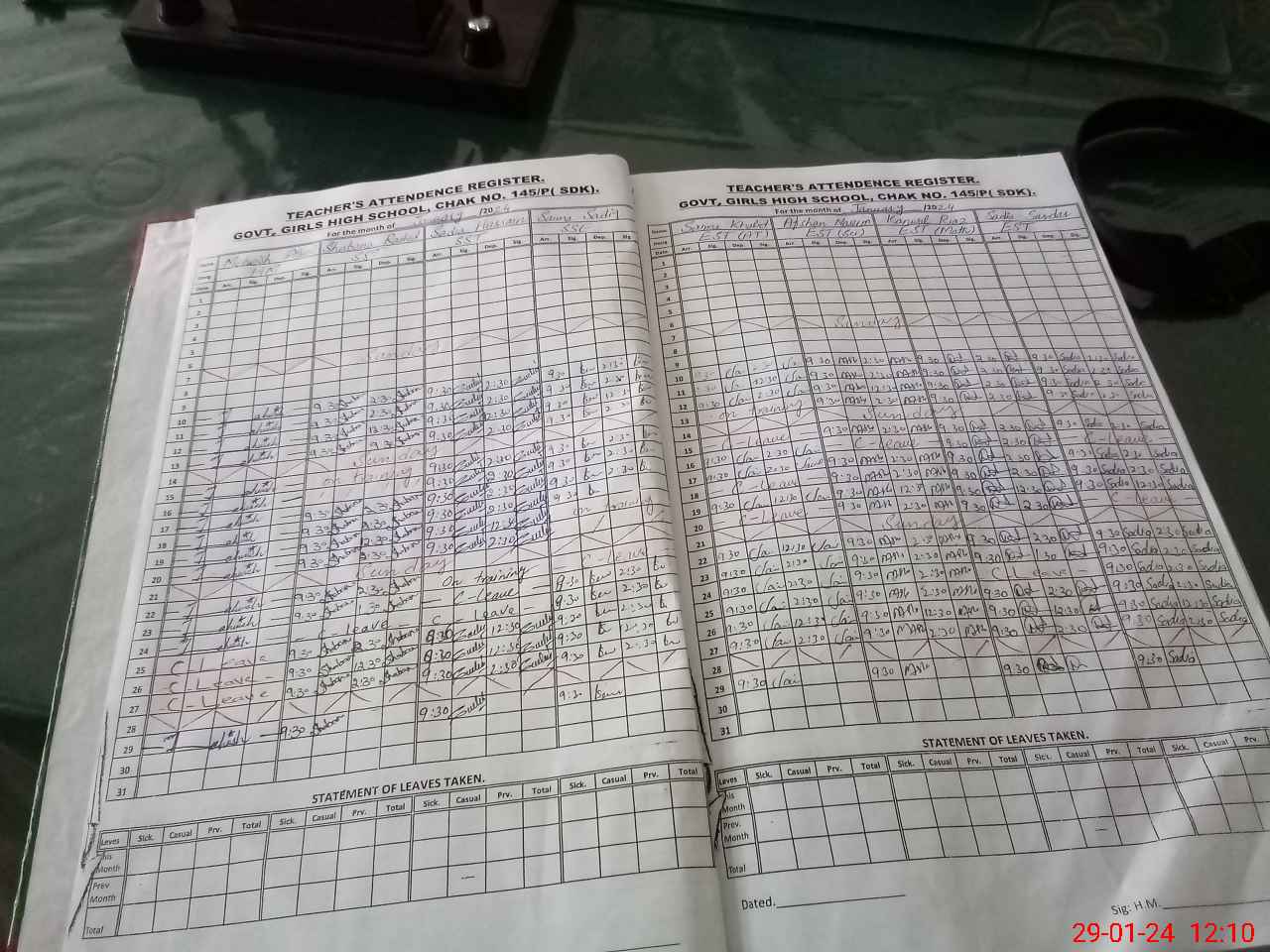 | CNIC | Full Name | Designation | R/C | Absence During Last Calender Month |