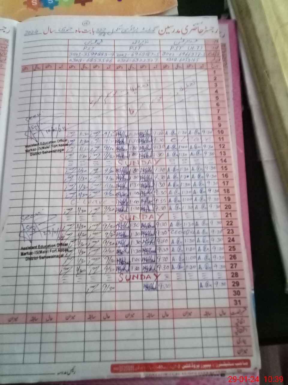 | Name: Ab**** Re**** Designation: (School Headmaster's/Headmistress's) PST Phone/Cell Number: 03**** |