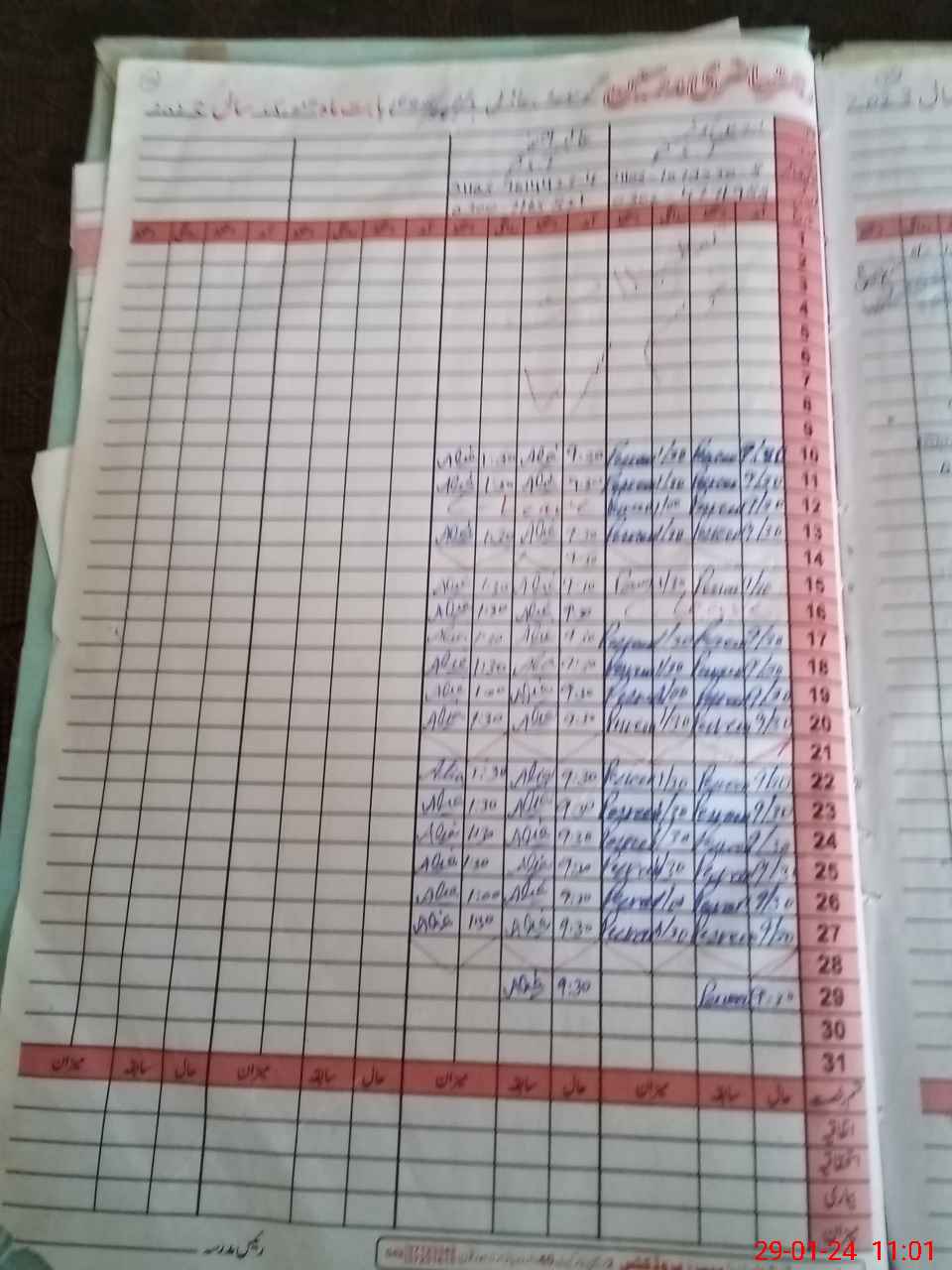 | CNIC | Full Name | Designation | R/C | Absence During Last Calender Month |