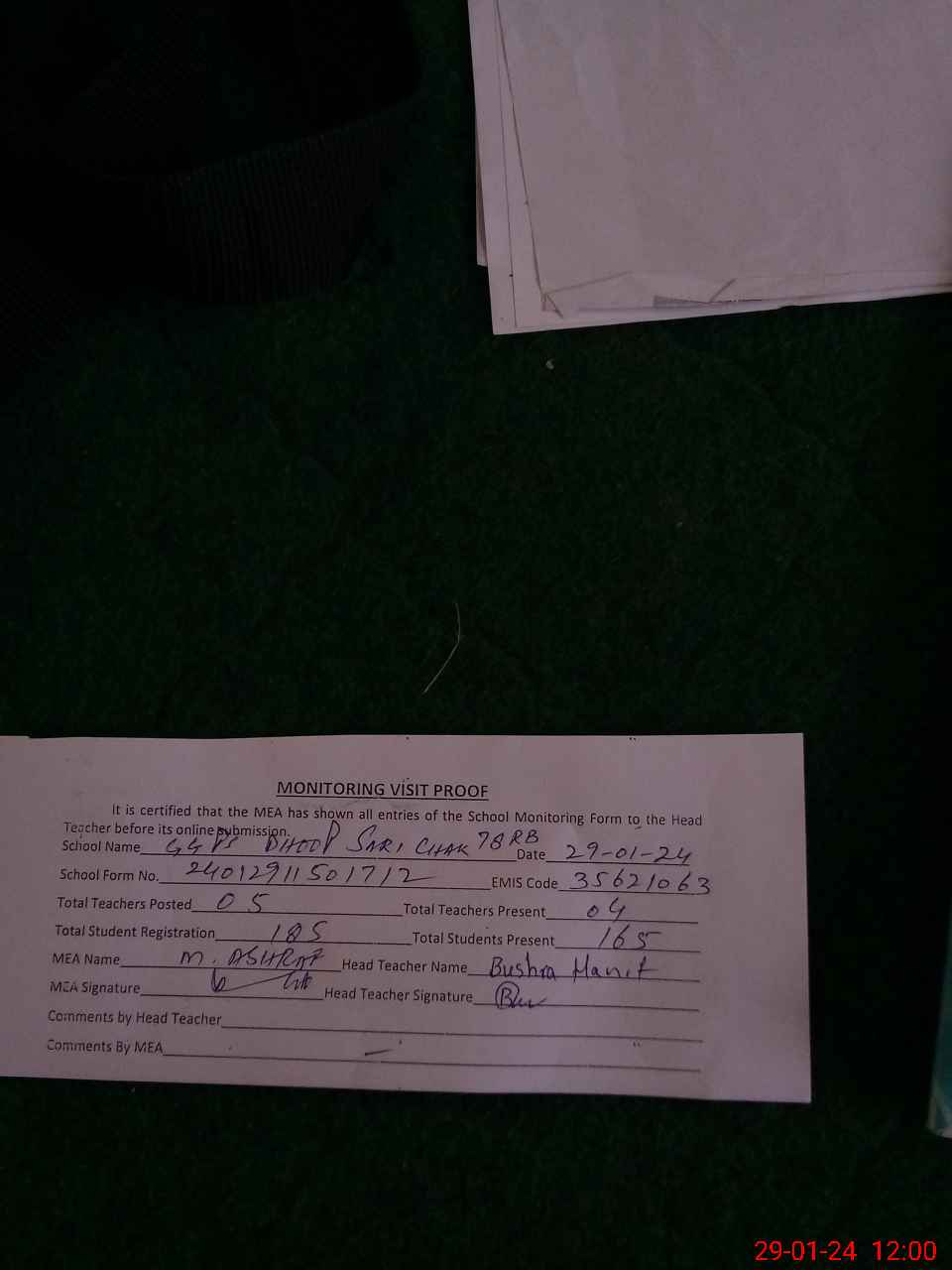 | EMIS Code: 35621063 | Name of School: GGPS DHUPP SARRI CHAK 78 | |||