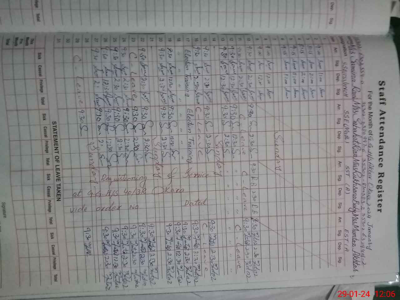 | CNIC | Full Name | Designation | R/C | Absence During Last Calender Month |