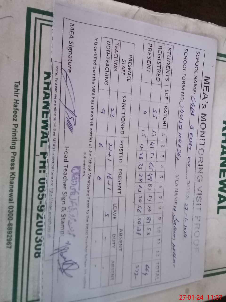 | EMIS Code: 36410031 | Name of School: GGHS 8-KASSI, KOT MULCHAND, KABIRWALA | |||