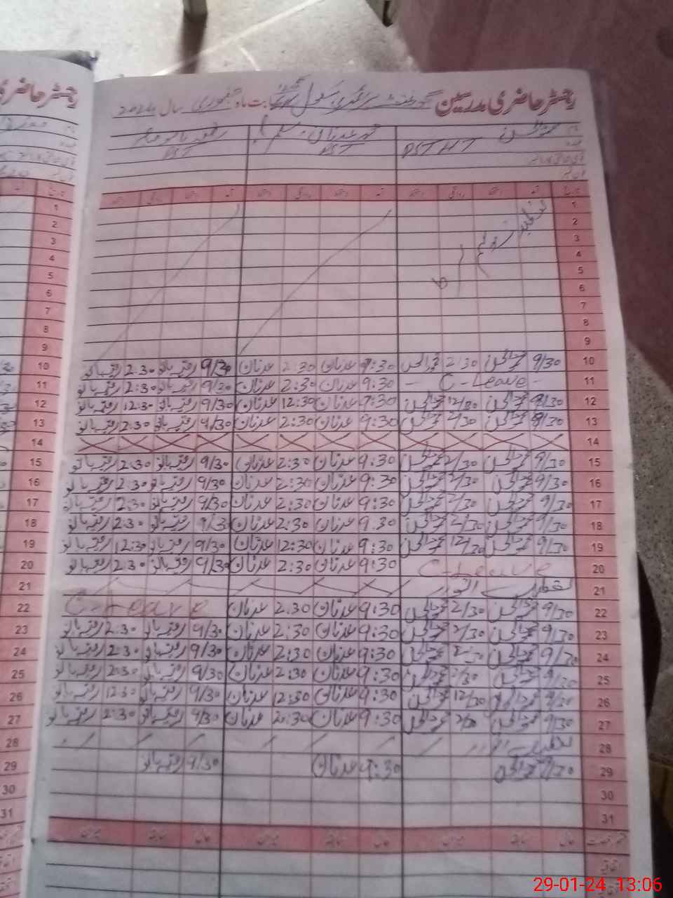 | CNIC | Full Name | Designation | R/C | Absence During Last Calender Month |
