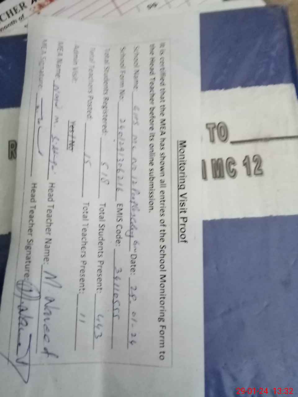 | EMIS Code: 34110555 | Name of School: GHS MC NO.12 PEOPLES COLONY | |||