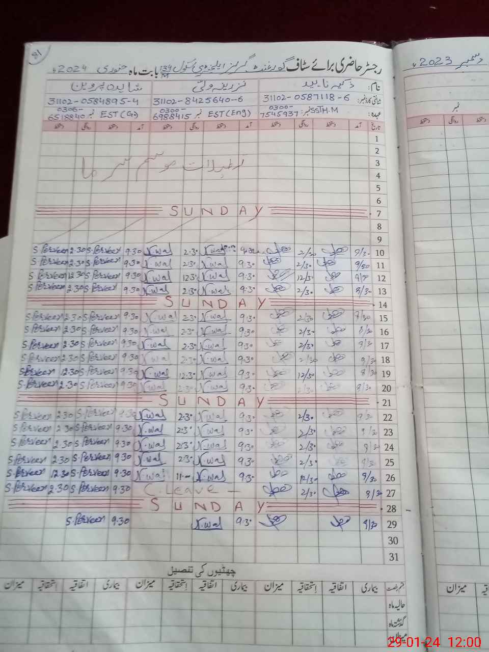 | Name: ZA**** NA**** Designation: (School Headmaster's/Headmistress's) S.S.T.(Arts) Phone/Cell Number: 03**** |