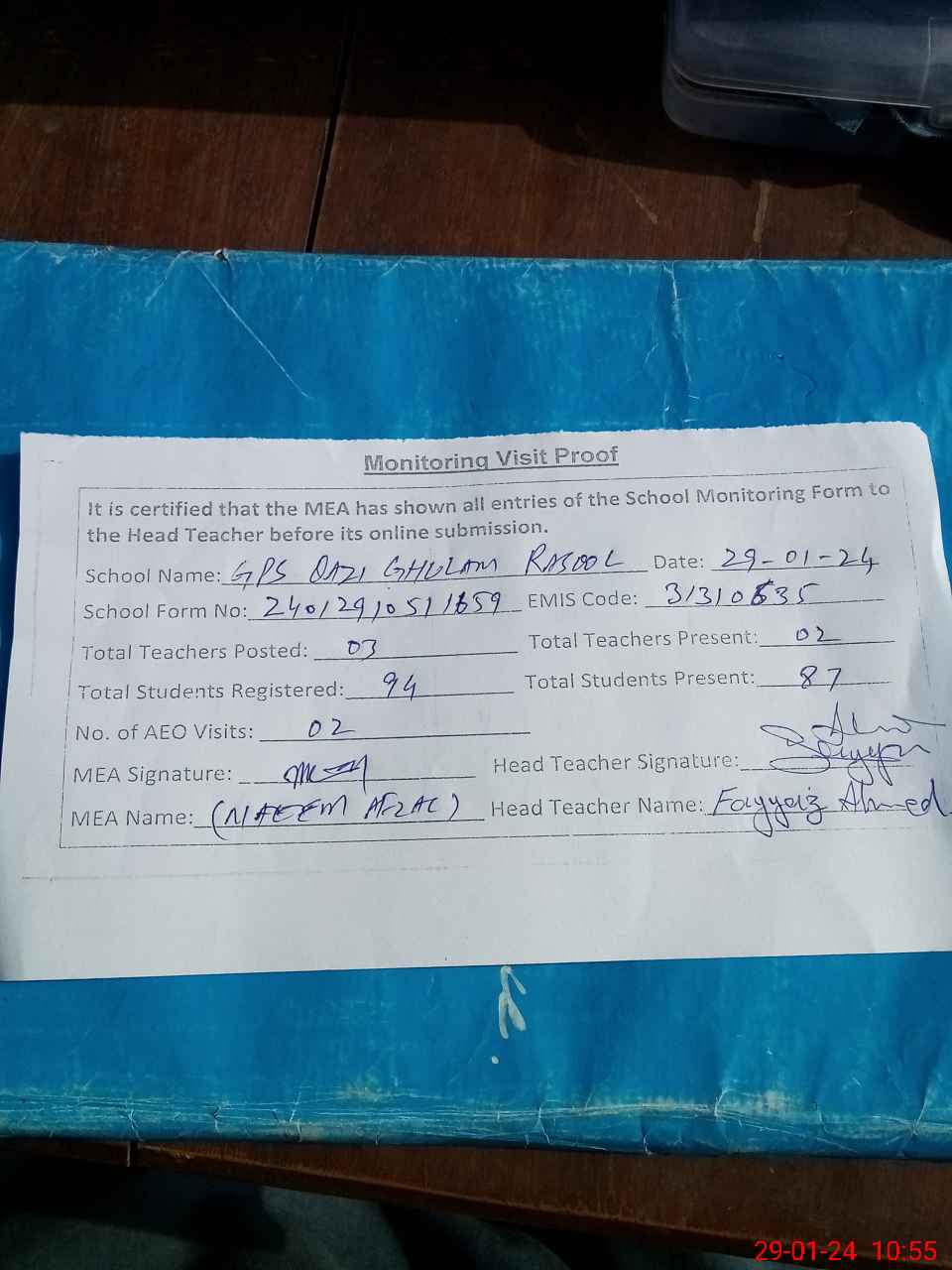 | EMIS Code: 31310635 | Name of School: GPS QAZI GHULAM RASOOL | |||