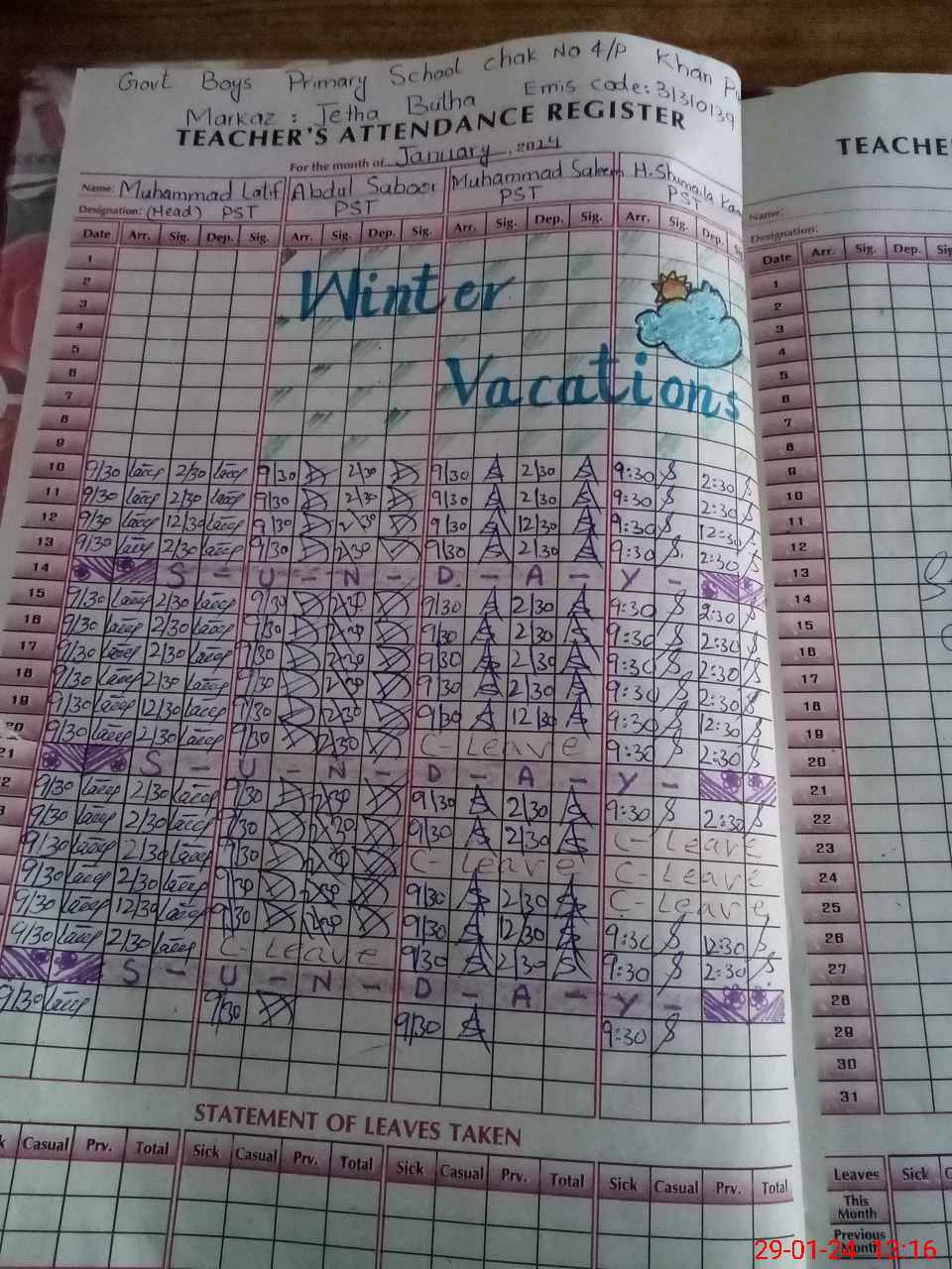| EMIS Code: 31310139 | Name of School: GPS CHAK NO 4/P | |||