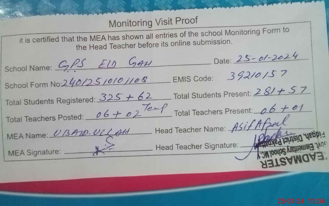 | EMIS Code: 39210157 | Name of School: GPS MC NO. 1 MOHALLAH EID GAH | |||