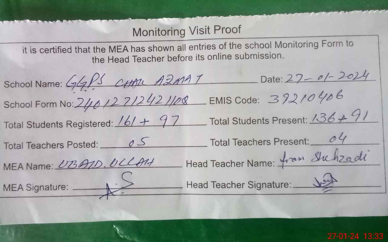 | EMIS Code: 39210406 | Name of School: GGPS CHAK AZMAT | |||