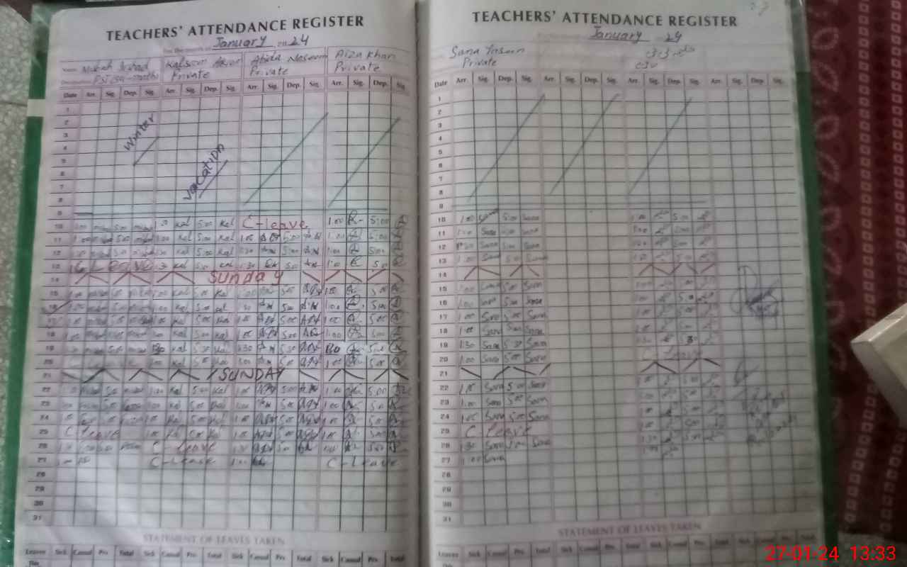| Attendance Register | Head Teacher | MEA with School | Visit Proof |