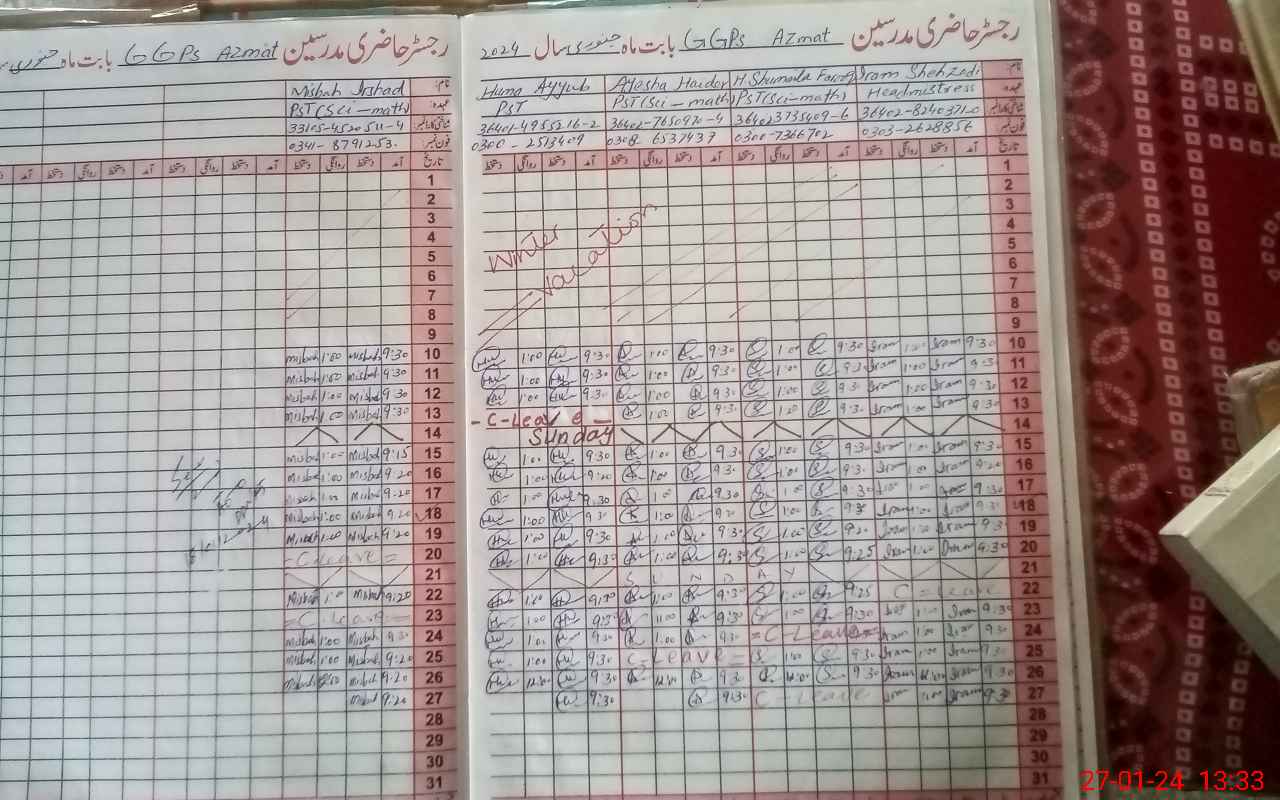 | Name: IR**** SH**** Designation: (School Headmaster's/Headmistress's) PST Phone/Cell Number: 03**** |