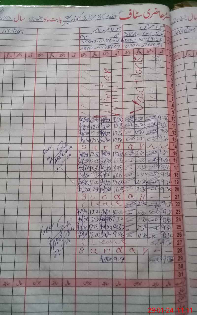 | CNIC | Full Name | Designation | R/C | Absence During Last Calender Month |
