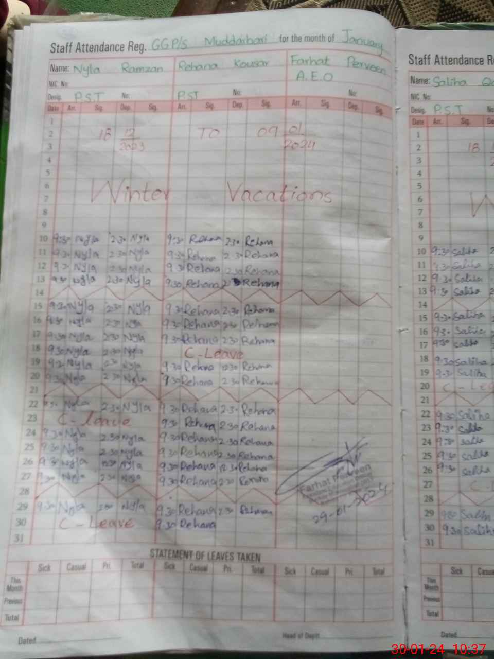 | CNIC | Full Name | Designation | R/C | Absence During Last Calender Month |