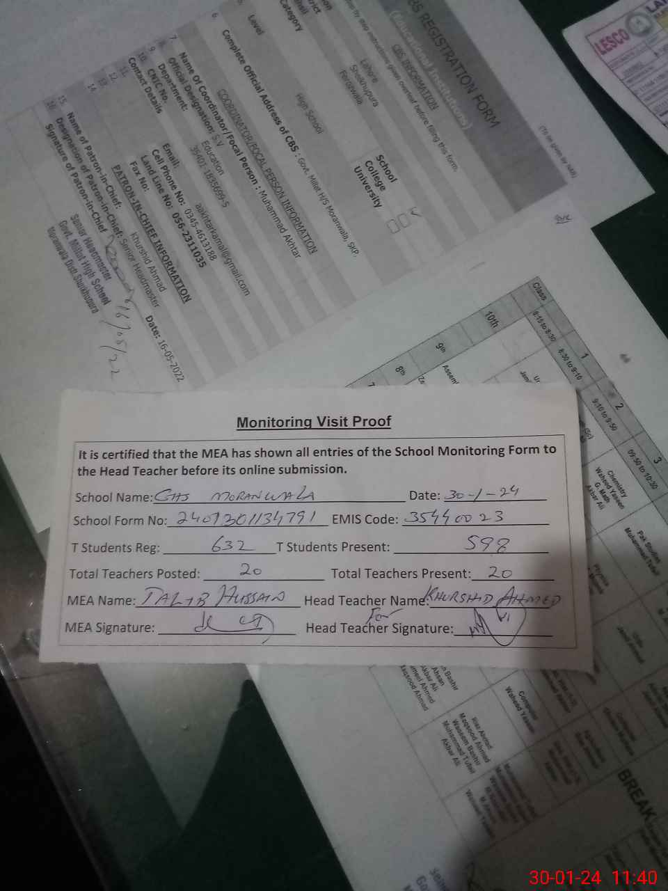| EMIS Code: 35440023 | Name of School: GHS MILLAT MORAN WALA | |||
