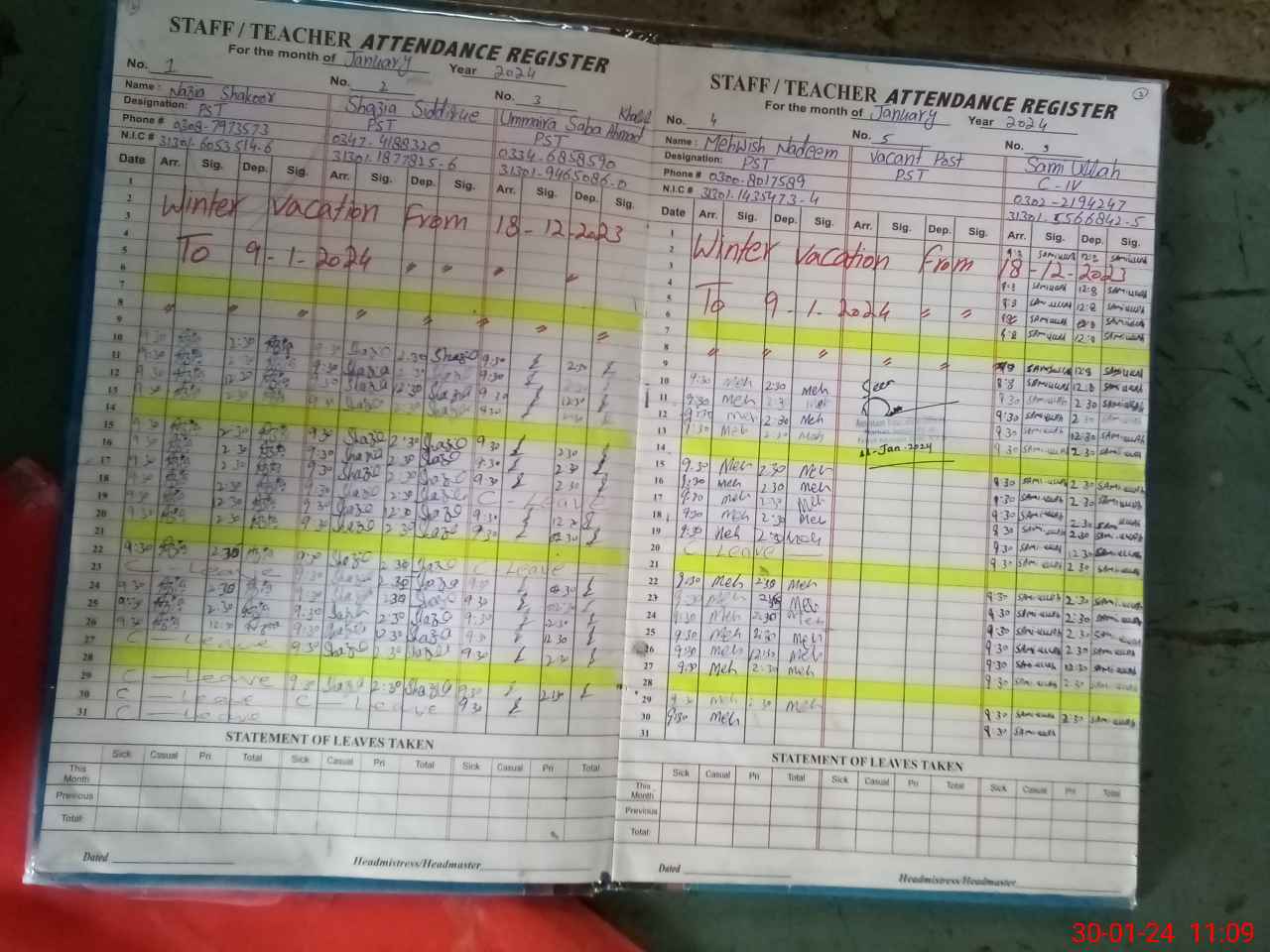 | Name: Na**** Sh**** Designation: (School Headmaster's/Headmistress's) PST Phone/Cell Number: 03**** |