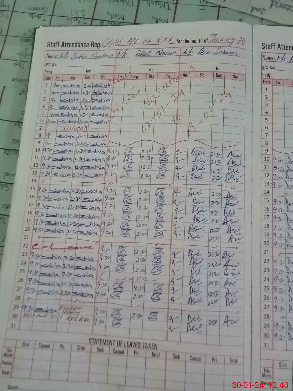 | Leave | Duty | Absent | Maternity | Medical | Ex- Pak |