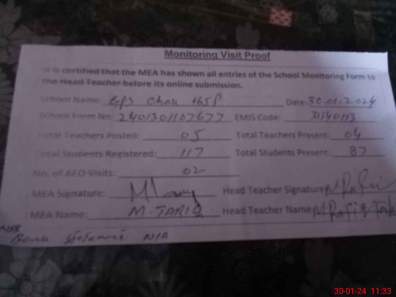 | EMIS Code: 31340113 | Name of School: GPS CHAK 165-P | |||