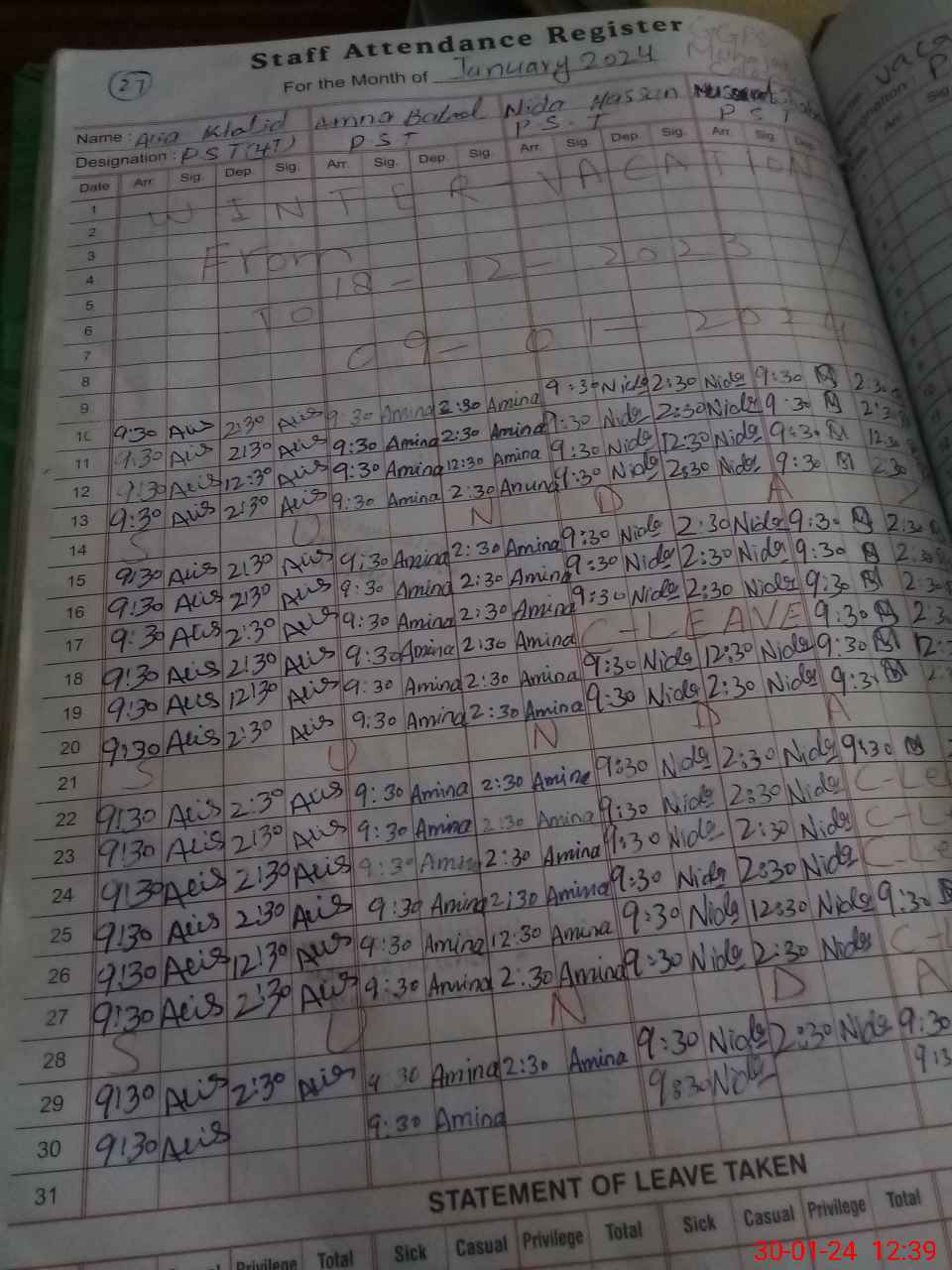 | Name: Al**** Kh**** Designation: (School Headmaster's/Headmistress's) PST Phone/Cell Number: 03**** |