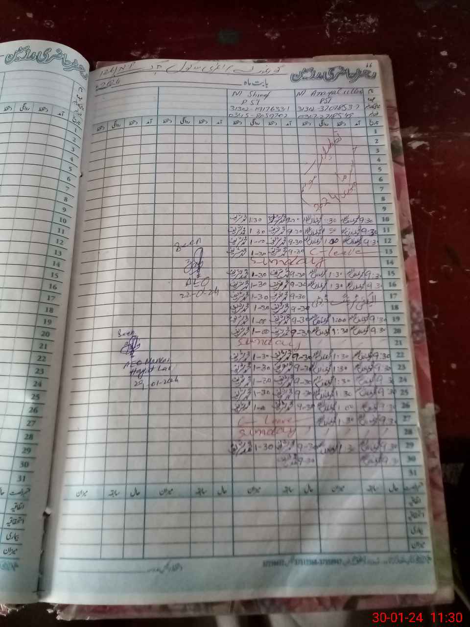 | CNIC | Full Name | Designation | R/C | Absence During Last Calender Month |