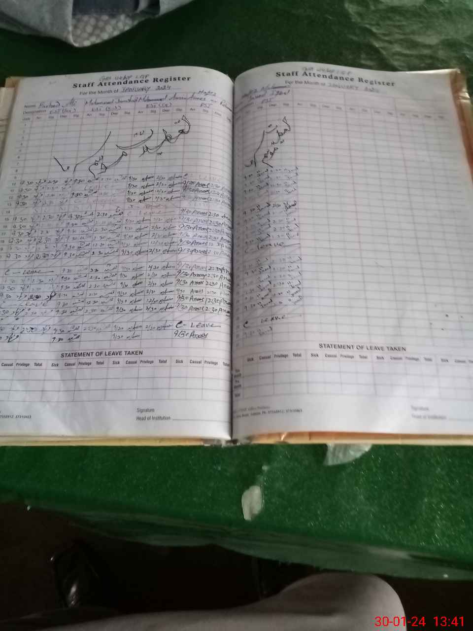 | CNIC | Full Name | Designation | R/C | Absence During Last Calender Month |