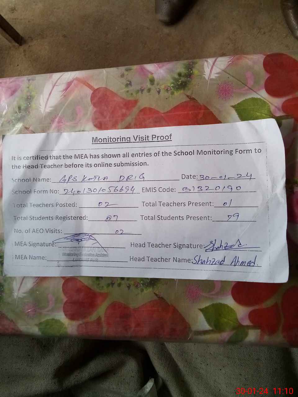 | EMIS Code: 31320190 | Name of School: GPS KOTLA DRIGH | |||
