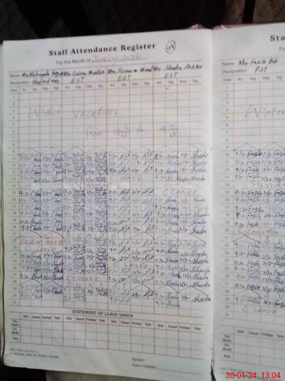 | Leave | Duty | Absent | Maternity | Medical | Ex- Pak |