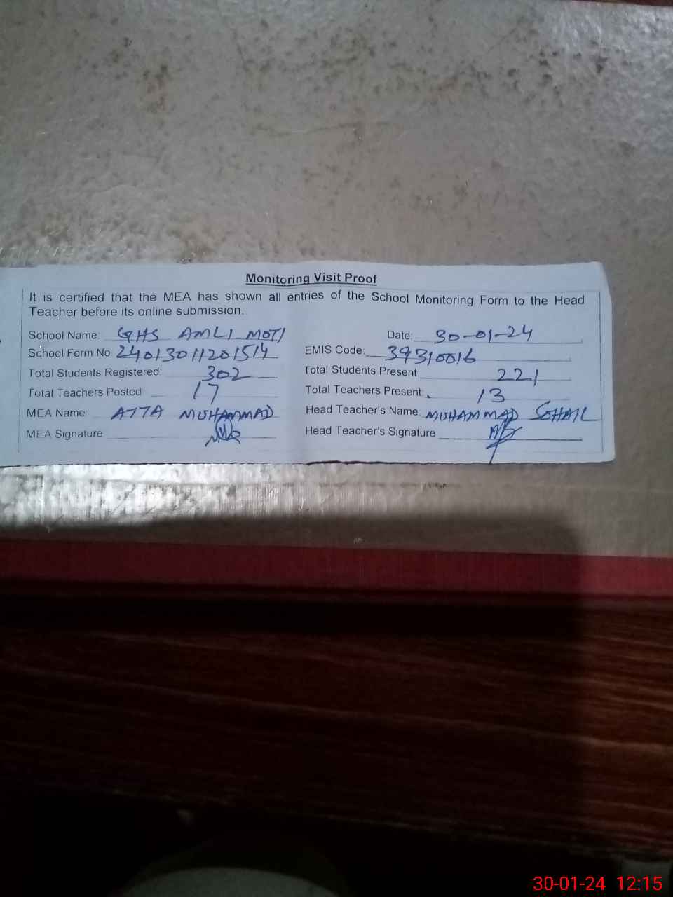 | EMIS Code: 39310016 | Name of School: GHS AMLI MOTI | |||