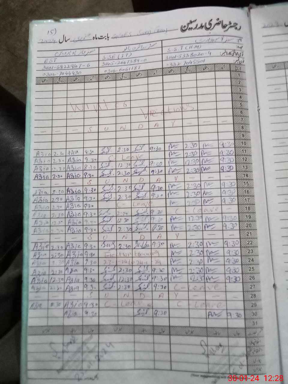 | CNIC | Full Name | Designation | R/C | Absence During Last Calender Month |