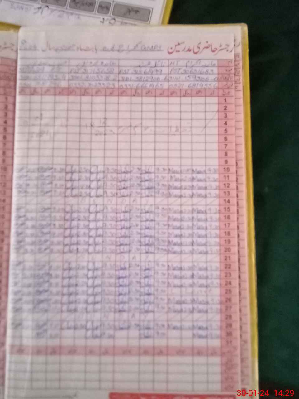 | CNIC | Full Name | Designation | R/C | Absence During Last Calender Month |