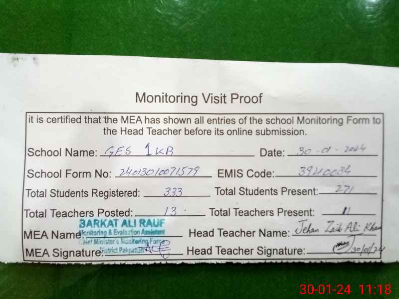 | EMIS Code: 39210034 | Name of School: GES 1 KB P/O PAKPATTAN | |||